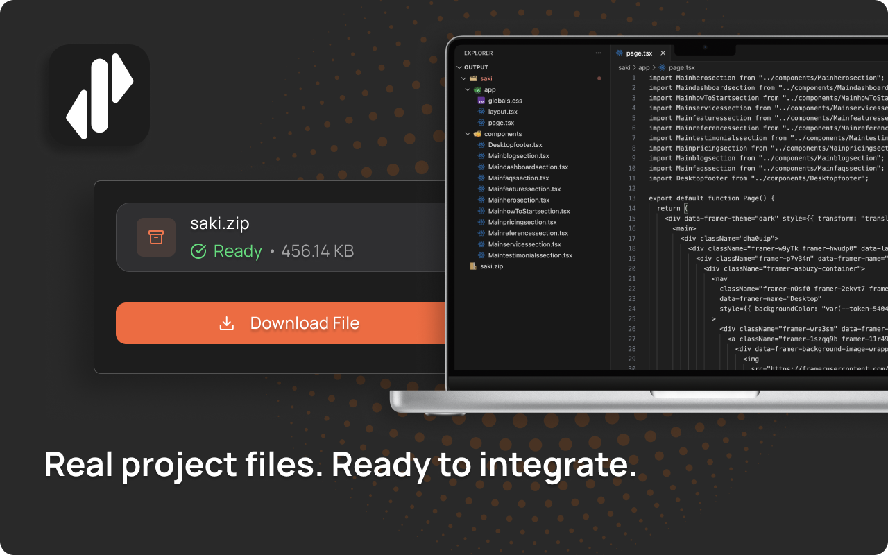Instead of exporting everything into one HTML, it generates structured production code that is detached from the Framer environment.